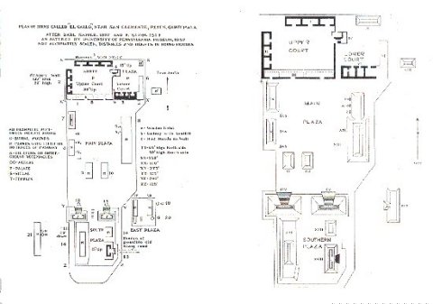 Die Arbeiten dieser ersten Periode beschränkten sich auf die nördliche Gruppe, welche sich aus zwei Höfen zusammensetzt, die von Palastarchitektur umgeben sind. Die Ausdehnung beträgt 75 m. in Ost-West-Richtung und 50 m. Nord-Süd. Der westliche Hof (Patio alto) ist gegenüber dem östlichen (Patio bajo) um 7 m. erhöht. Beide waren durch eine überdachte Treppe verbunden und nach Osten hin geöffnet – in Richtung des fruchtbaren Tals und der aufgehenden Sonne.