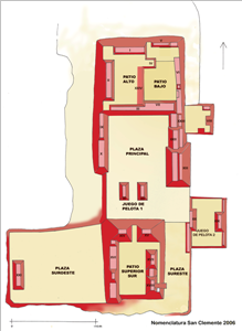 Die Stadtanlage von San Clemente weist eine Nord-Süd-Achse auf, die in drei Hauptsektoren unterteilt ist: