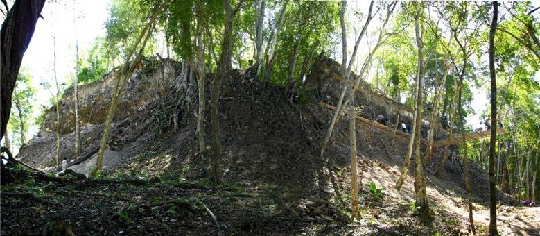 1992 entdeckten die Wissenschaftler des „Triangulo Cultural“ die Stätte wieder, nachdem sie die Aufzeichnungen der Mayaforscher des 19. und frühen 20. Jahrhunderts eingesehen hatten. Die archäologische Stätte weist noch heute sehr viel sichtbare Originalarchitektur in Form von stuckierten Mayabögen und Wänden auf. Leider war die Stätte schon beim ersten Besuch durch Raubgräbertunnel sehr in ihrem Baubestand beeinträchtigt und litt auch in der Folgezeit unter weiteren „Besuchen“ von Raubgräbern.